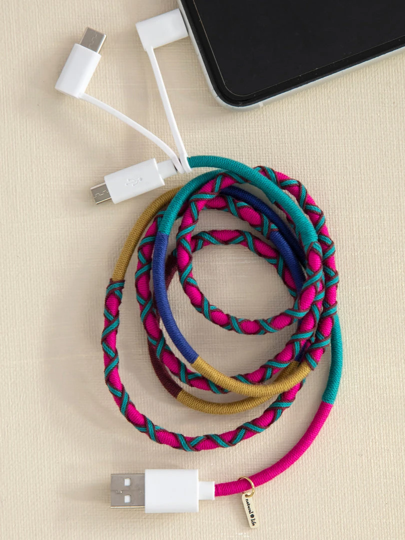 Replace your boring charging cord for our newest tech addition! This 3 In 1 Charging Cord is hand-wrapped in colorful threads and now able to charge your USB A to iPhone Lightning, USB C compatible, and USB micro. It’s fast charging and will make charging your accessories just that much more fun!