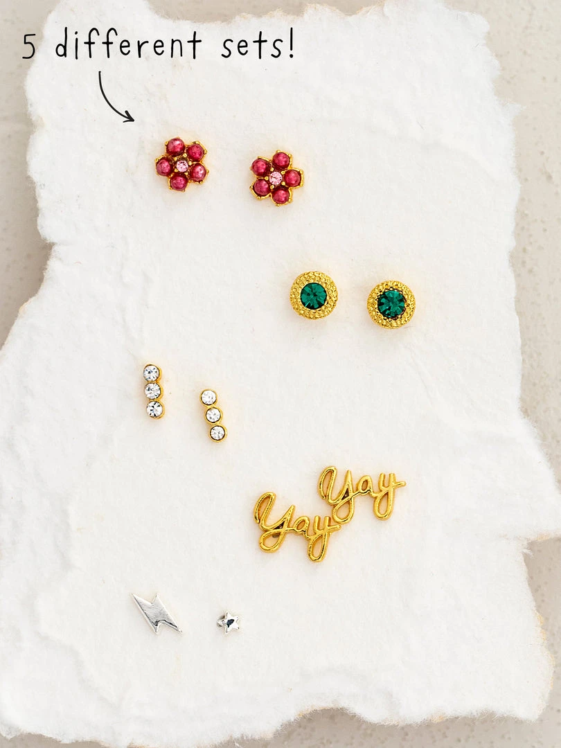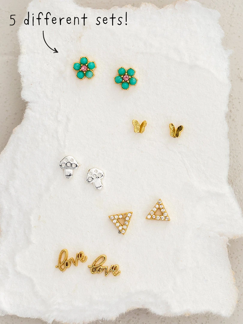 This Perfect Tiny Stud Set is the cutest set of 5 silver & gold-plated stud earrings! Each one in the set is so unique and super cute on, making them the perfect gift to yourself or someone you love!