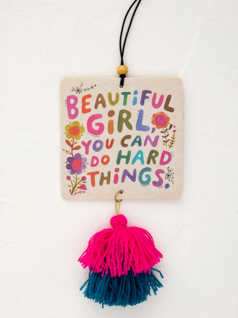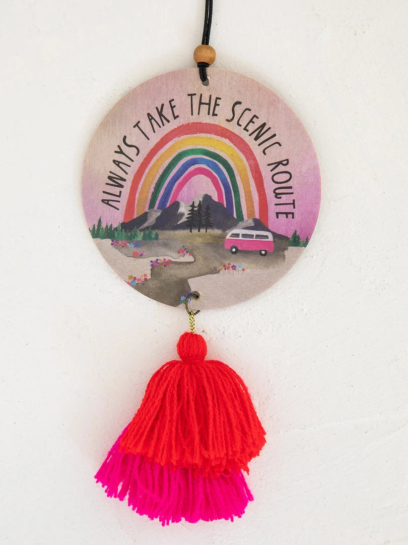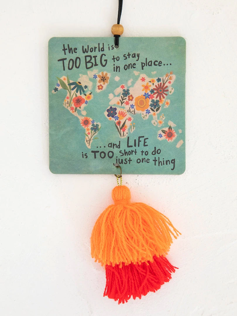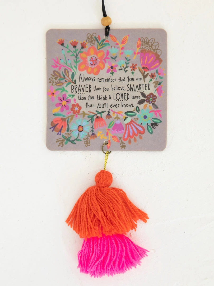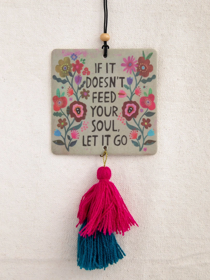 Let’s face it. Our cars can smell a bit musty… hang one of our uplifting Air Fresheners in your car to keep it smelling fresh! Each beautiful design is scented with a different essential oil. (See the “details” section for each scent.) Your car will smell soo good and you’ll get inspired each time you see it, since they’re each designed with one of our most-loved Chirps! You can also hang one in your closet or laundry room to freshen up the space or anywhere else in your home that needs a lift. It’s rare to find something that can smell this good AND make you smile at the same time!