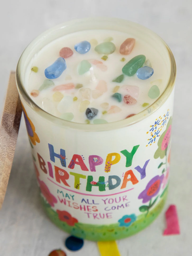 This is the cutest Birthday Candle ever!! It’s filled with an assortment of super fun crystals and once it burns down, the crystals can be taken out and kept as a treasure! We love to bring it out and light it for everyone’s birthday each year, it’s soo fun to leave it lit all day! It also makes the perfect little birthday gift for the people you love and want to celebrate!