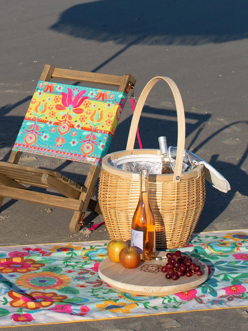 Meet the perfect Picnic Basket! It features a wooden lid that you can remove and turn into a cheese board and it’s fully insulated to keep your drinks and snacks cool…oh, and it even fits a wine bottle! It’s so lightweight and easy to tote down to the beach, to a picnic or camping! Our favorite part about it is, it doubles as a cute picnic table to put all your little things on!