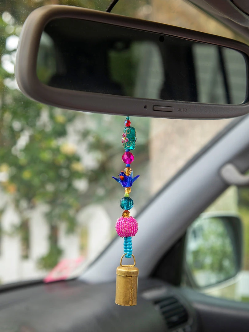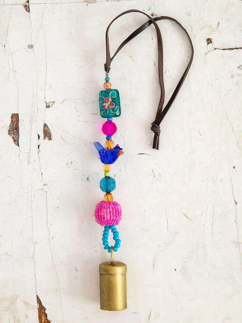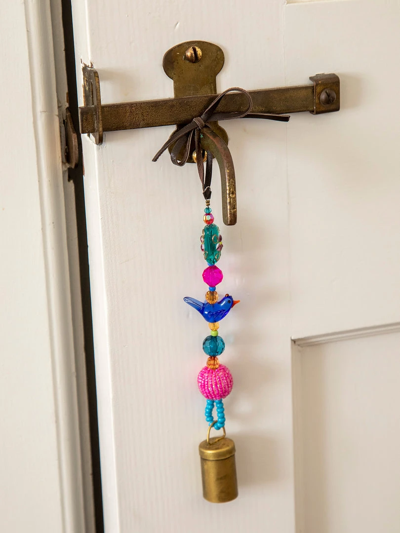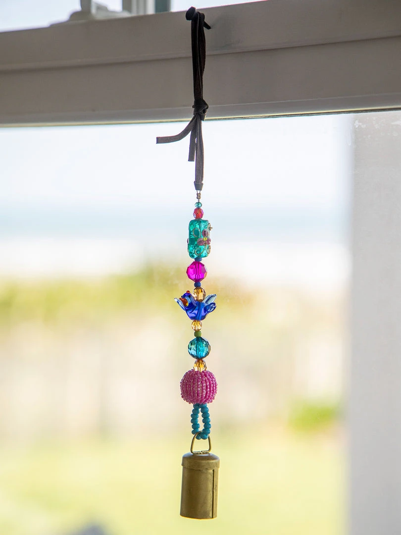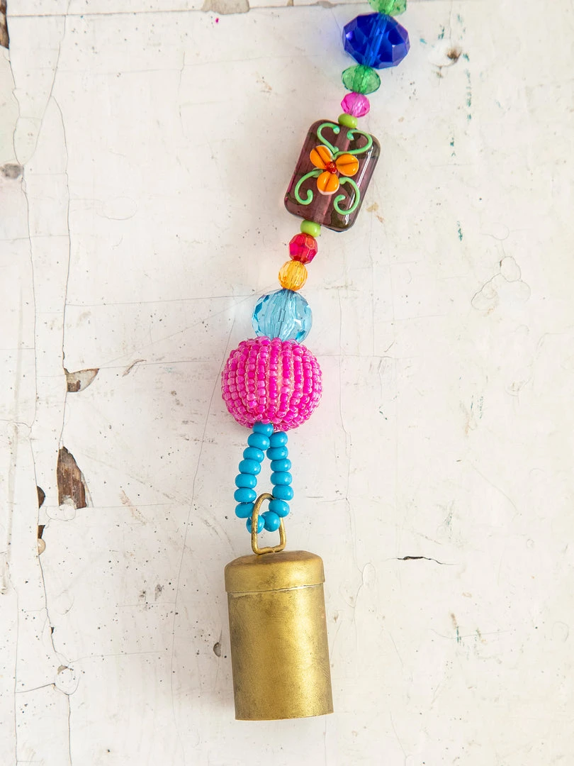 The Boho Beaded Bell is such a fun addition to your space! The shorter one is perfect for your door knob, a window, your kitchen or hanging from your purse and the longer one is so cute on your porch or hanging from your tree as a windchime! It features a metal bell on the end a strand of beaded glass and comes with a loop at the top for easy hanging!