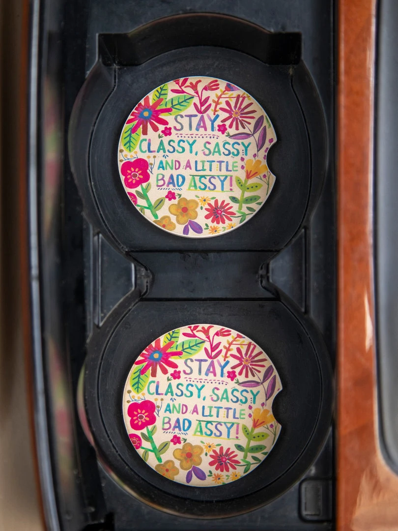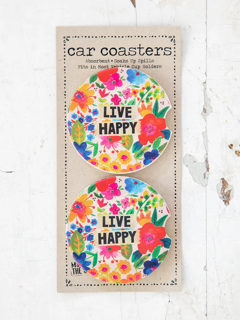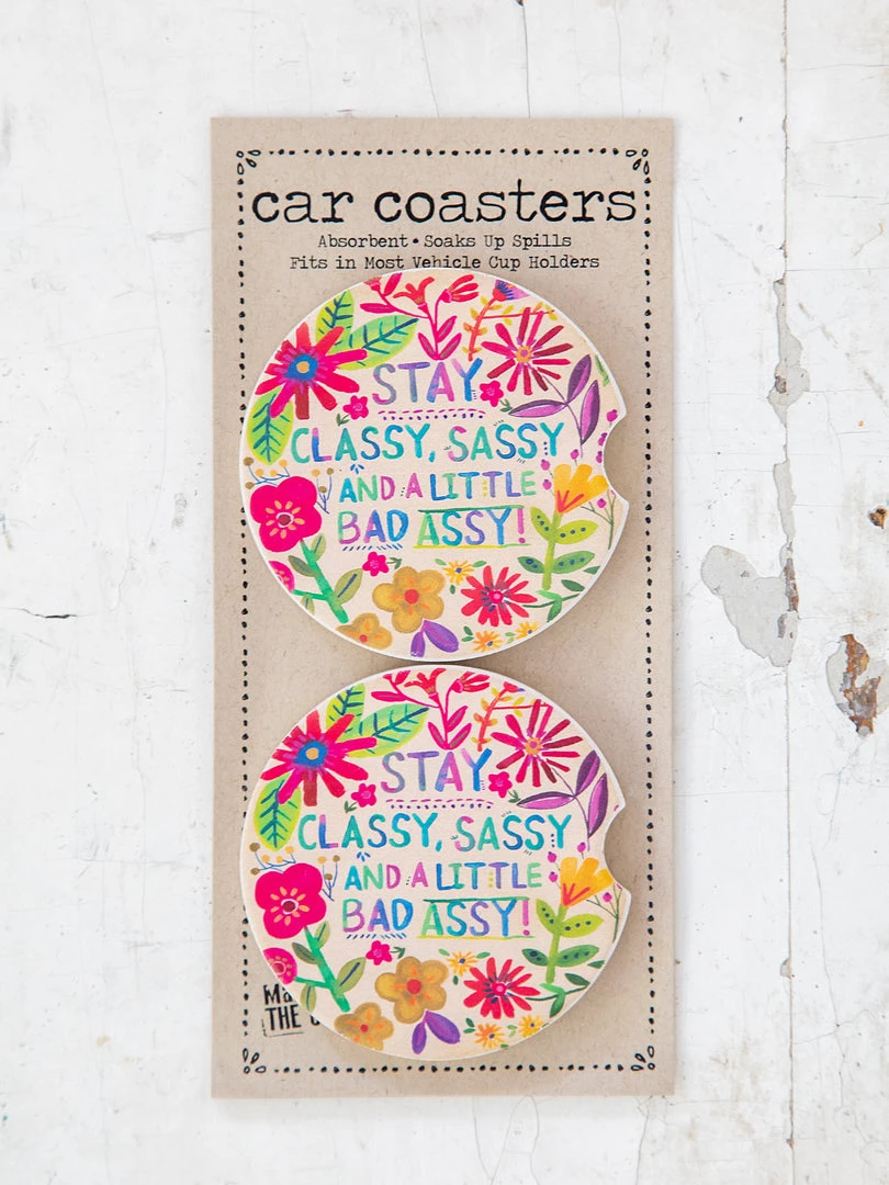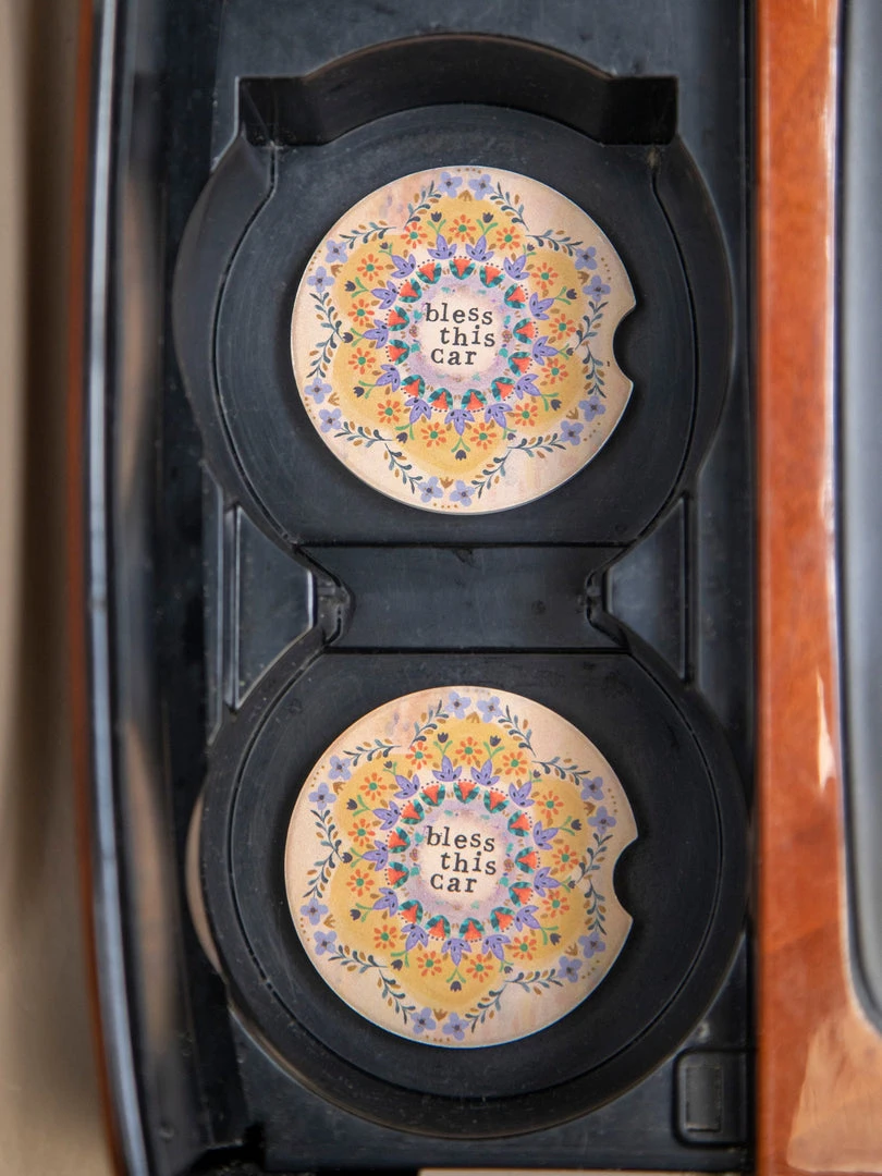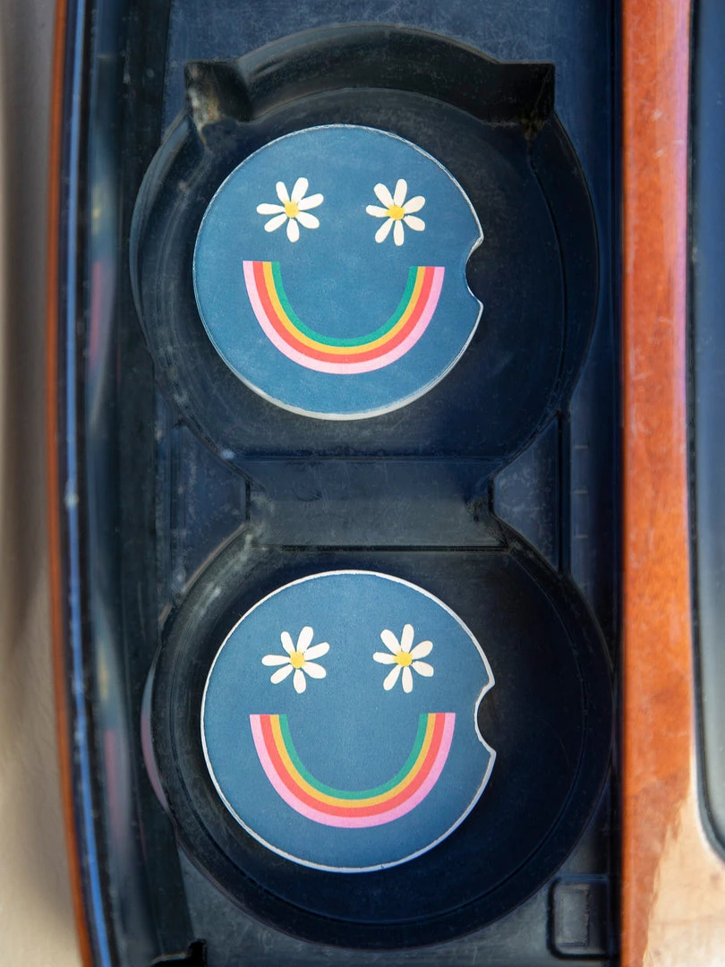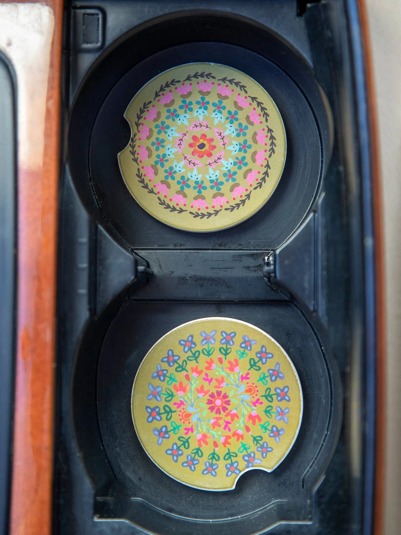 We all love bringing coffee to-go but hate sticky spills in our cupholders! Made of super-absorbent stoneware, our Car Coasters will catch any spills, drips, or dribbles. They prevent cupholder residue and soak up annoying condensation, all while adding a playful boho look to the inside of your car. This set of two Car Coasters is the ideal gift for new drivers or that friend with a long commute. We spend a lot of time driving and sitting in our cars, so make it a fun place to be! Check out the rest of our car collection here!