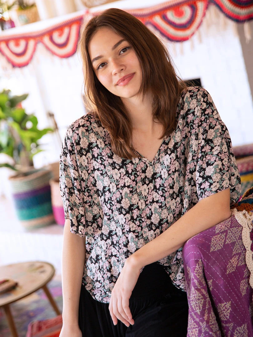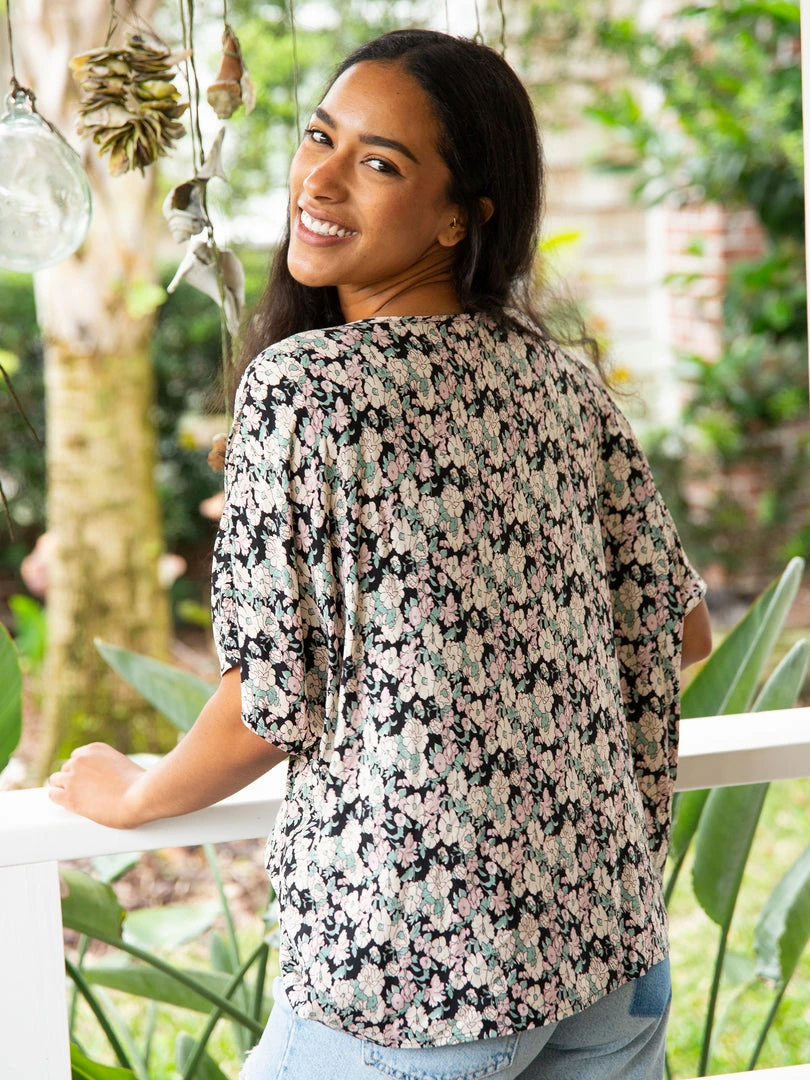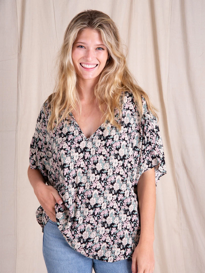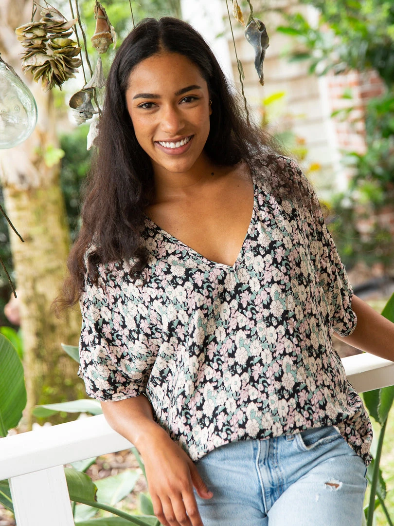 The Easy V-Neck Top is exactly what it sounds like… easy and relaxed! It features a pretty floral print, dolman sleeves and an oversized boxy fit. It looks so cute paired with our bottoms or your favorite pair of jeans. It is the kind of top you can just throw on and go & still look put together!