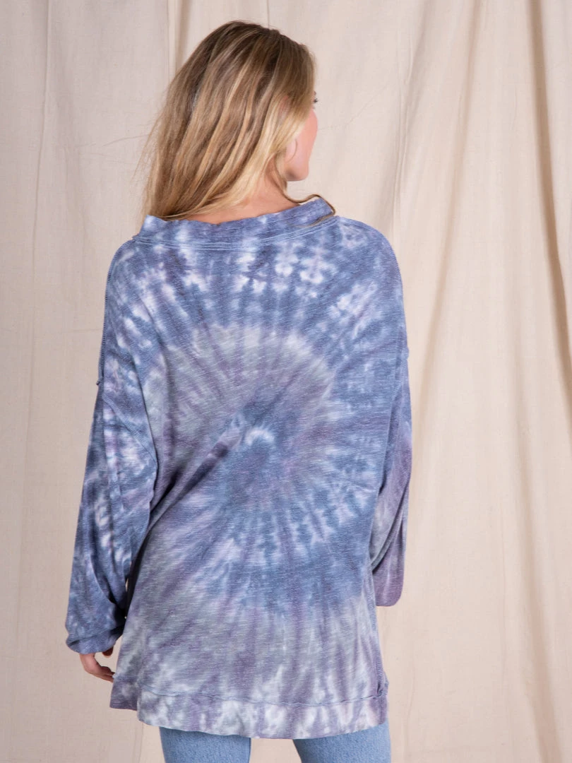 Your new favorite top is here… and it’s SO soft and cozy! The Favorite Tie Dye Top features exposed seams, a wide neckline, and draw-string detail. It’s perfect for throwing on to run errands or just lounging around the house! Due to the nature of tie-dye, each piece will be unique.