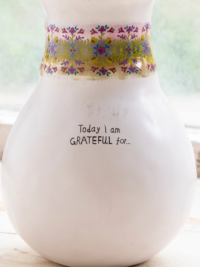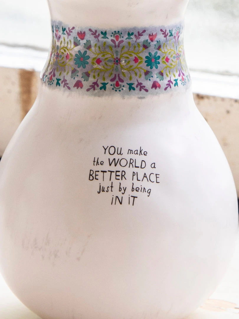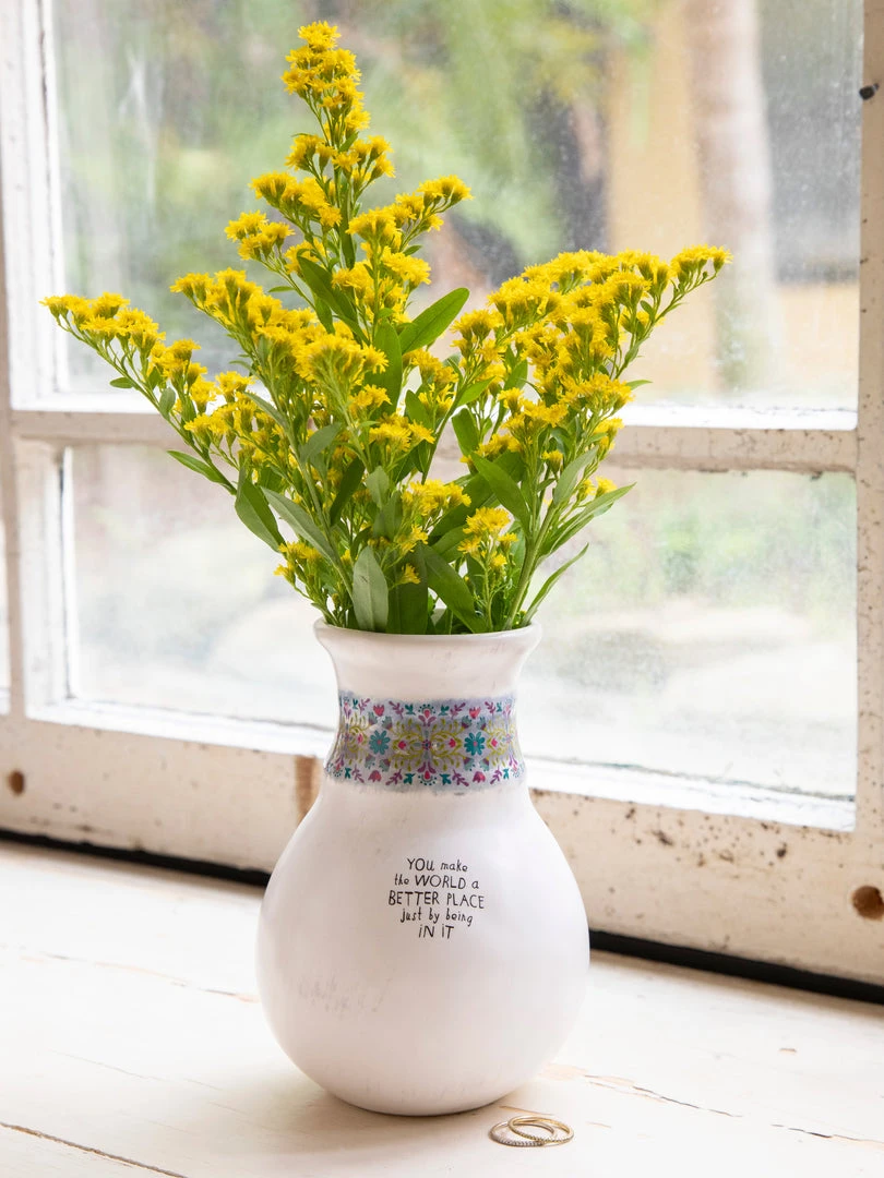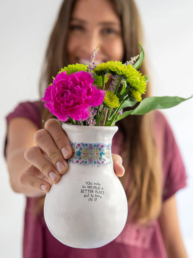 Everyone loves our Bud Vases so much that we decided to make a larger size for bouquets! It’s hand sculpted and features a sweet sentiment and border print. It fits a full bouquet of grocery store flowers and makes for a thoughtful gift for someone you love! It’s soo pretty and will make any space a little bit brighter!