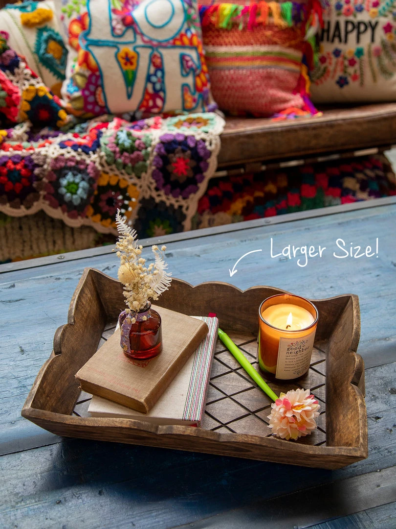 This Wooden Nesting Tray Set gives a little rustic touch to your bohemian bungalow! They look so cute nested inside each other or used around the house on a dresser, coffee table or side table as a catchall for your remote, keys & other trinkets! They’re made of mango wood and feature pretty scalloped edges, making them perfect pieces of décor too!