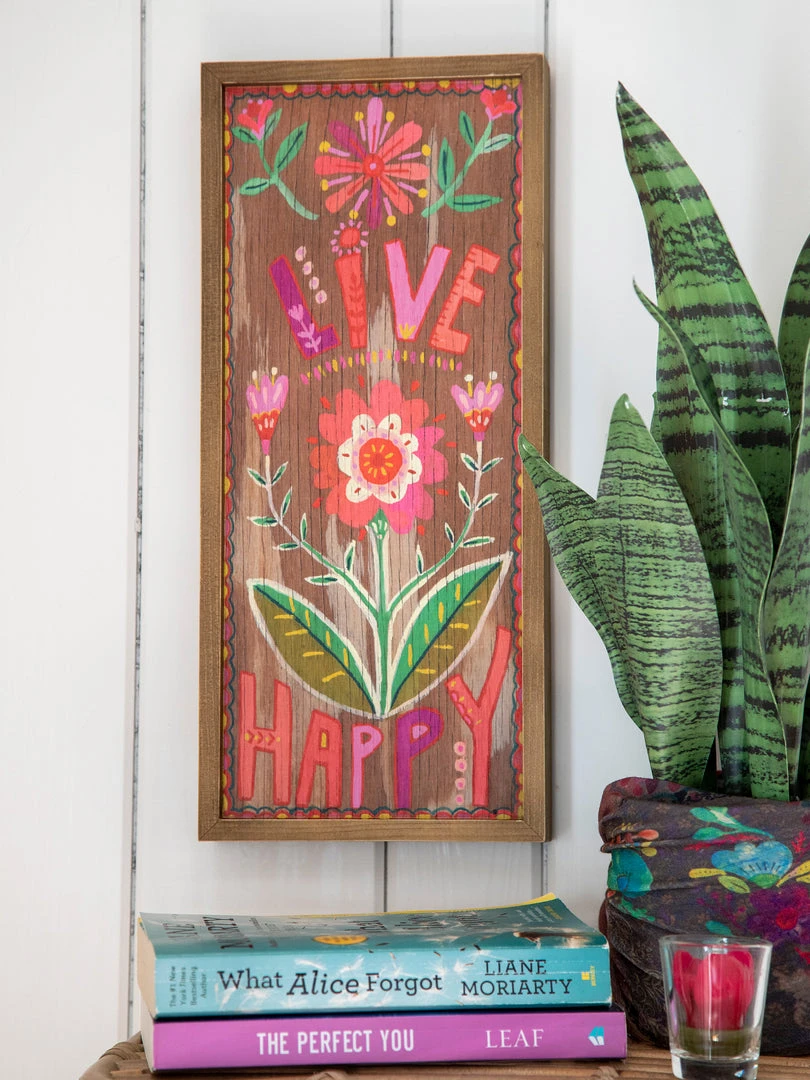 The story behind this Bungalow Art is what makes it so special to us! We got inspired during one of our artist retreats and this piece of wood was passed around to all of our artists. Each one of them painted a little something on it to add their own little creative touch. We loved it so much, we decided to make it for you! It features a rustic feel and the prettiest bohemian art. It’s tuckable, so it’s perfect for a shelf, inside a nook or you can hang with other pieces to make a gallery wall!