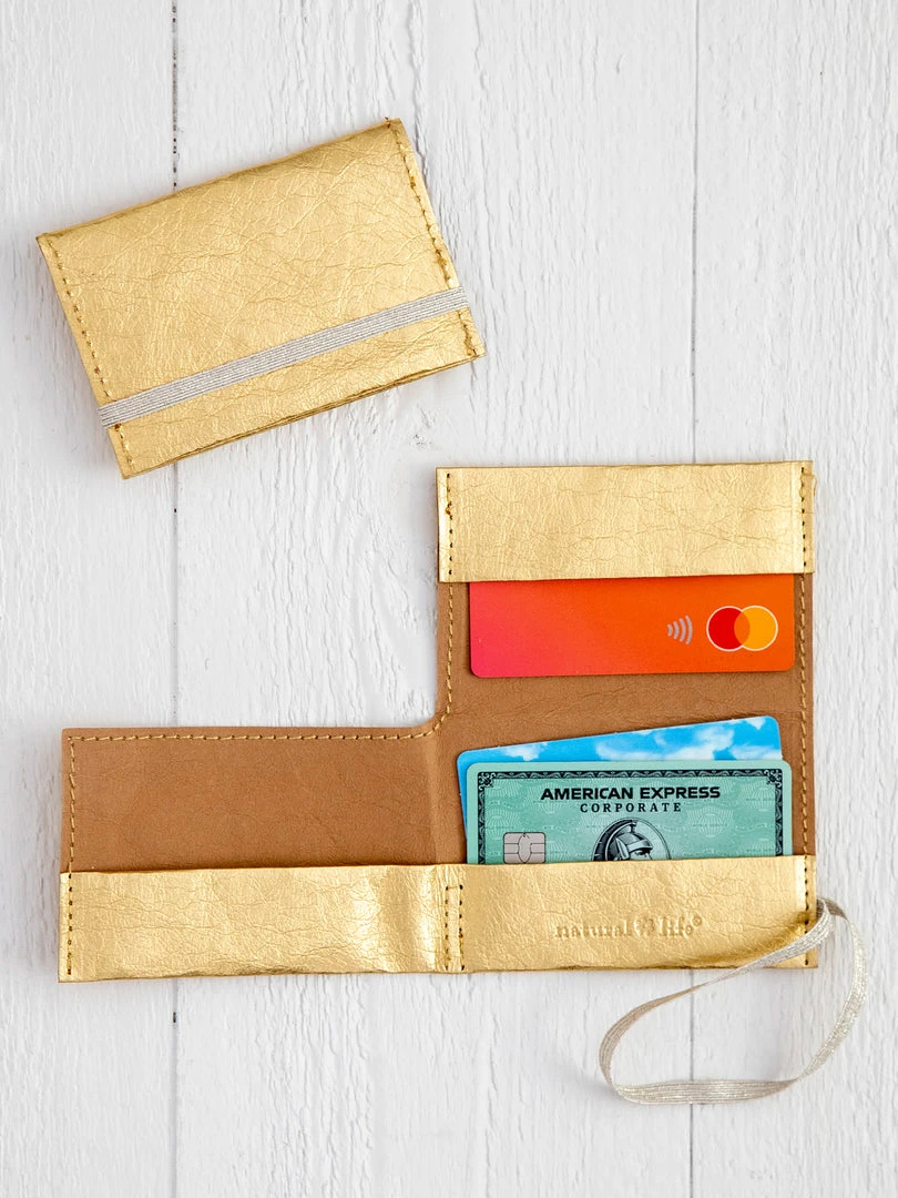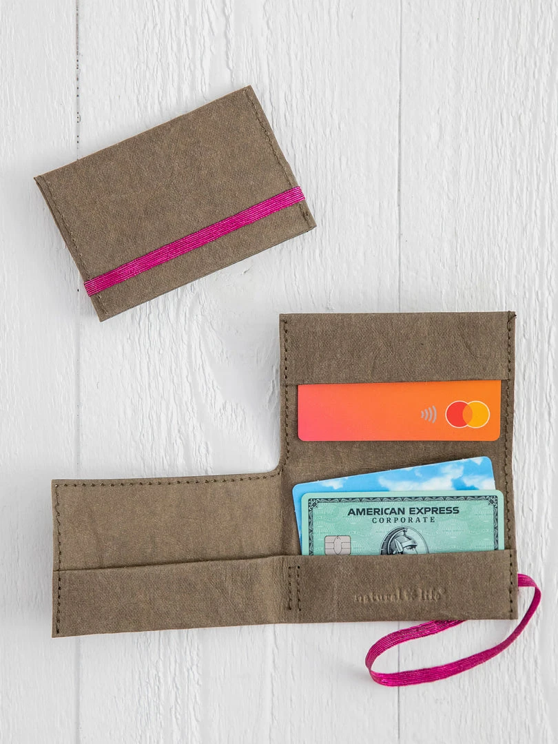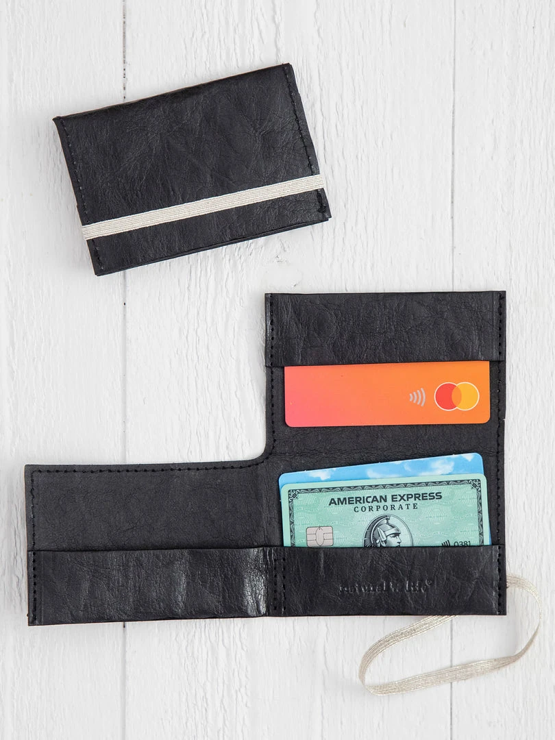The Penny Paper Card Holder is made of biodegradable paper and features 3 card slots and an elastic band to hold it closed. It’s perfect for keeping your cards and cash organized and it’s so sleek and slender for stashing in your pocket or purse!