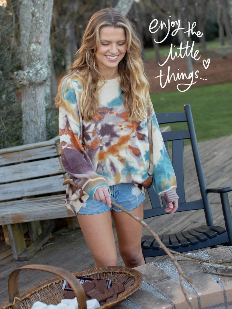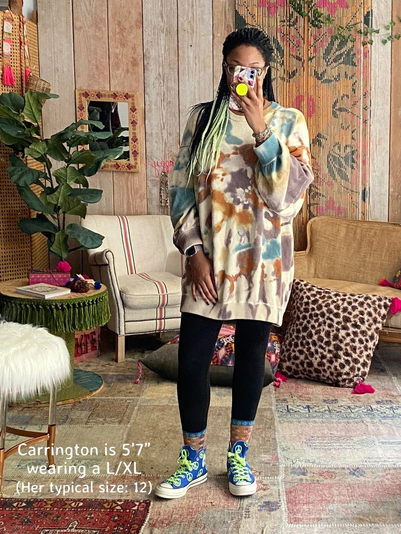 Inspired by our love for tie dying, the Taylor Tie Dye Sweater is a slouchy pullover featuring a cozy material and wide long sleeves. Just throw it on to make any outfit more fun, whether it’s worn with your favorite pair of jeans, leggings, or even as a dress… you’ll want to wear it everywhere! Due to the tie-dye technique, each one is unique!